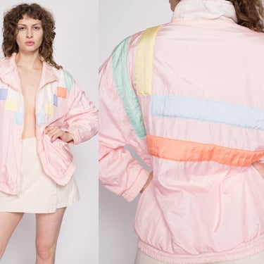 80s Pink Color Block Cropped Windbreaker Small Vintage Women s Very well made.